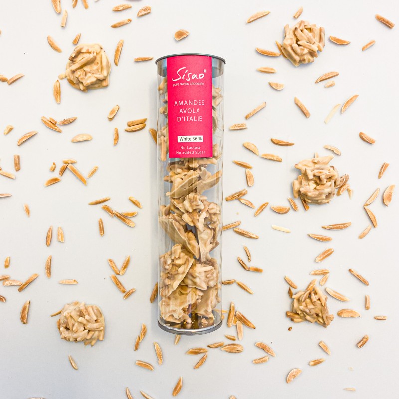 Découvrez le subtil mélange des amandes d’Avola torréfiées et de notre chocolat blanc 36 %. Le croquant de l'amande associé à sa douceur se marie parfaitement avec la rondeur du chocolat blanc tout en intensifiant le goût de l'amande d'Avola.